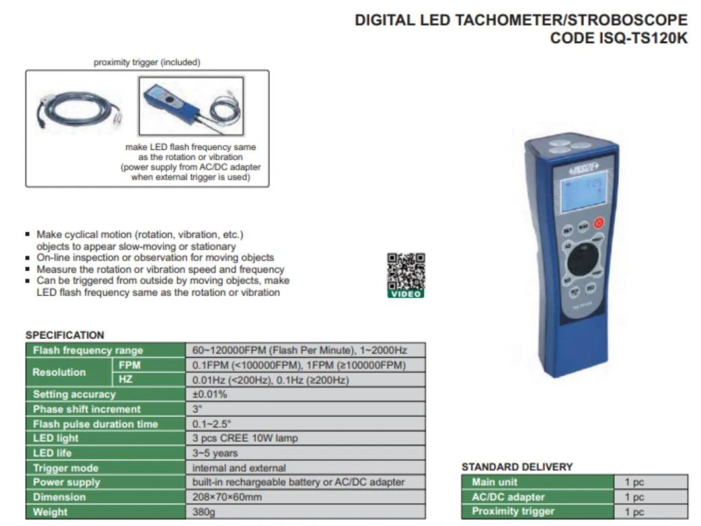 Stroboscopul digital cu LED de la INSIZE este un instrument profesional conceput pentru observarea si analiza fenomenelor de miscare ciclica sau rapida. Utilizeaza un sistem de iluminare cu 3 LED-uri CREE de inalta performanta (10W) si este ideal pentru inspectia vizuala a pieselor in miscare, echilibrare, masuratori de vibratii, testarea echipamentelor rotative si alte aplicatii industriale.