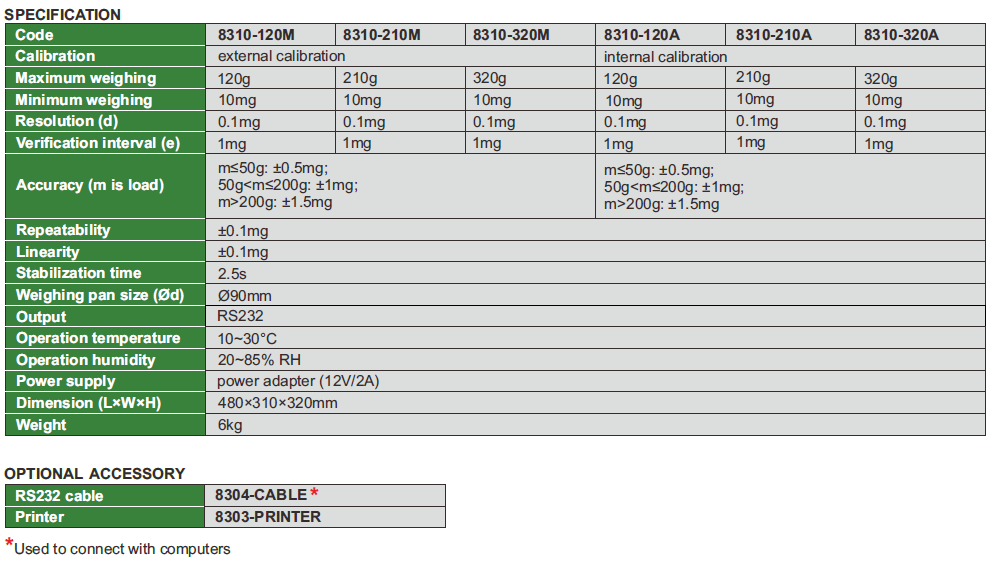Accesorii optionale: imprimanta 8303-PRINTER, cablu RS232 8304-CABLE