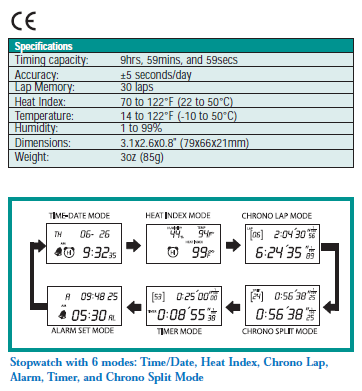 Cronometrul digital EXTECH HeatWatch™ este un instrument multifunctional unic, esential in conditii de vreme calda. Pe langa functiile standard de cronometrare, acesta masoara temperatura, umiditatea si, cel mai important, indicele de caldura (Heat Index), care arata temperatura resimtita atunci cand umiditatea se combina cu temperatura aerului.