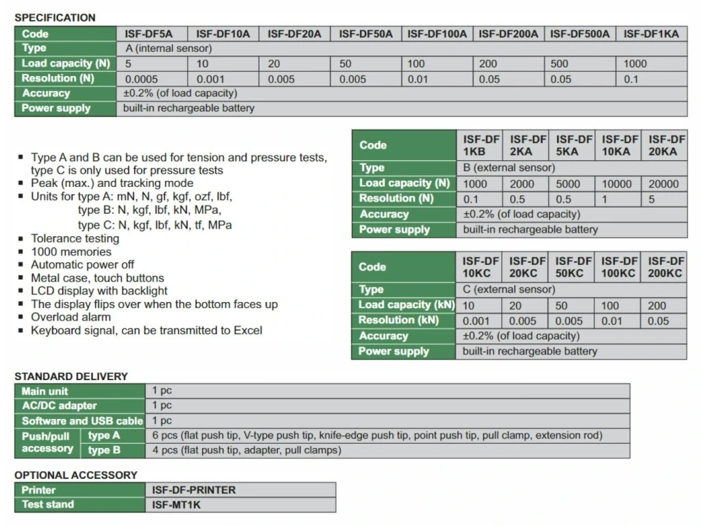 • Versatilitate: Masoara forte de impingere si tragere in multiple unitati de masura si include functia de testare a tolerantei.