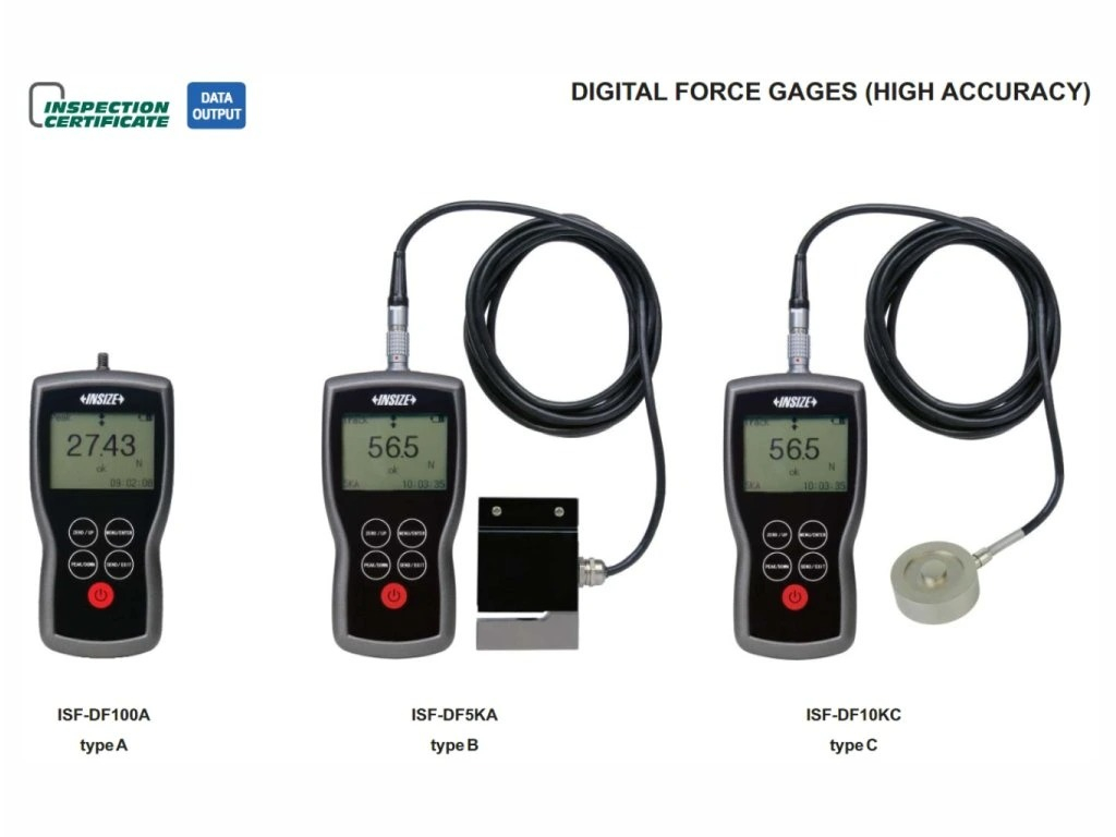 Dinamometrul digital industrial INSIZE Tip A este un instrument electronic de inalta precizie, cu senzor integrat in corpul dinamometrului, conceput pentru masurarea extrem de precisa a fortelor de impingere (presiune) si a fortei de tragere (tensiune). Cu o sarcina maxima de 500 N si o rezolutie excelenta de 0,005 N, acest dinamometru este ideal pentru aplicatii de laborator, metrologie si controlul calitatii care necesita precizie de varf.