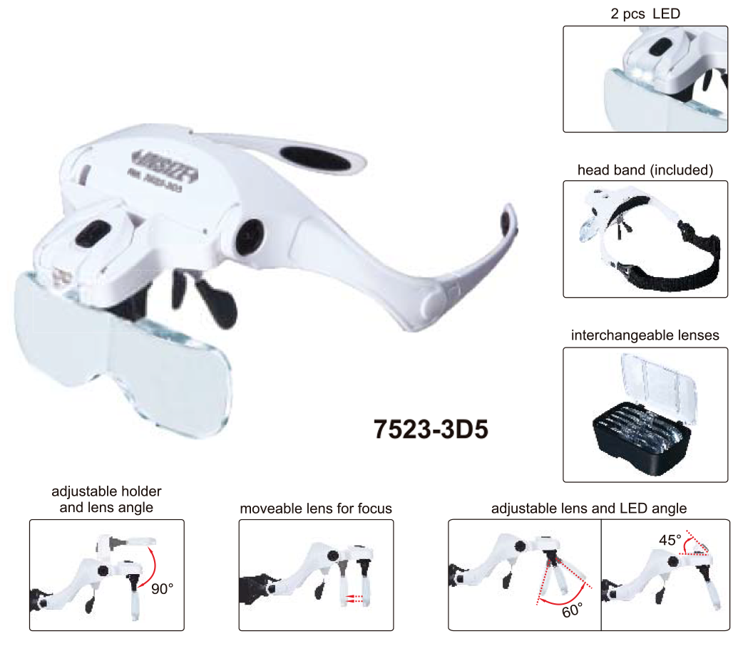 INSIZE Ochelari cu 5 lupe interschimbabile INSIZE, marire 1x–3.5x, iluminare LED