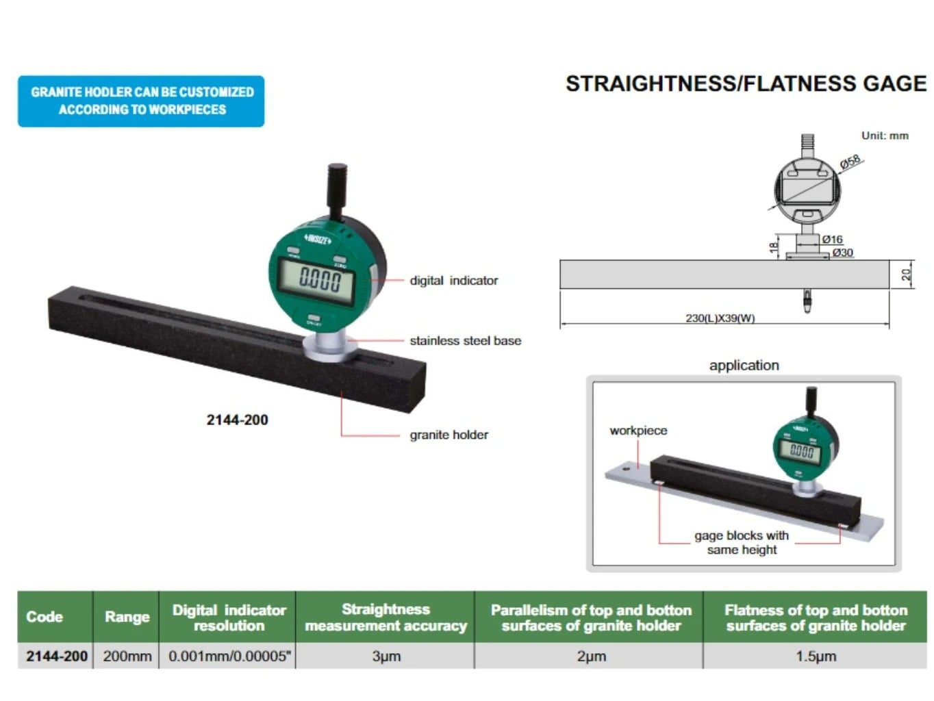 Instrument profesional de la Insize pentru măsurarea planeității pieselor, echipat cu comparator digital și talpă suport din granit pentru stabilitate și precizie ridicată. Conceput pentru aplicații industriale și laboratoare de metrologie, asigură rezultate fiabile și repetabile.