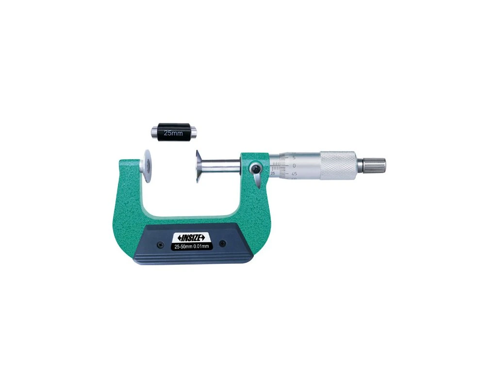 Micrometrul mecanic INSIZE cu discuri pentru intervalul 25-50 mm este un instrument de precizie indispensabil in atelierele de prelucrari mecanice si controlul calitatii. Designul sau este optimizat pentru masurarea cotei peste dinti (lungimea tangenta comuna) la rotile dintate. Suprafetele de masurare plate, in forma de disc cu diametrul de 20 mm, permit contactul simultan pe mai multi dinti, facilitand determinarea corecta a parametrilor danturii.