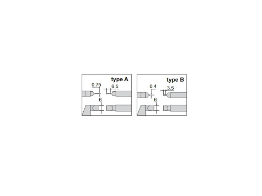 Suprafete de masurare Tip A: Lamele au dimensiuni de 6,5 x 0,75 mm, fiind ideale pentru masuratori fine in degajari submilimetrice.