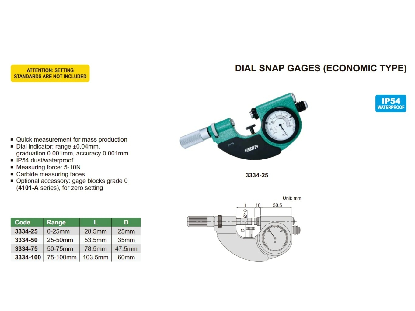 Pasametru mecanic de inalta calitate si rezistent la apa de la producatorul INSIZE, conceput special pentru utilizarea in medii industriale exigente. Acest instrument are un interval de masurare de 25-50 mm si o rezolutie ultra-precisa de 0.001 mm, fiind echipat cu un indicator in doua sensuri care il face ideal pentru verificari rapide pe liniile de productie in masa.