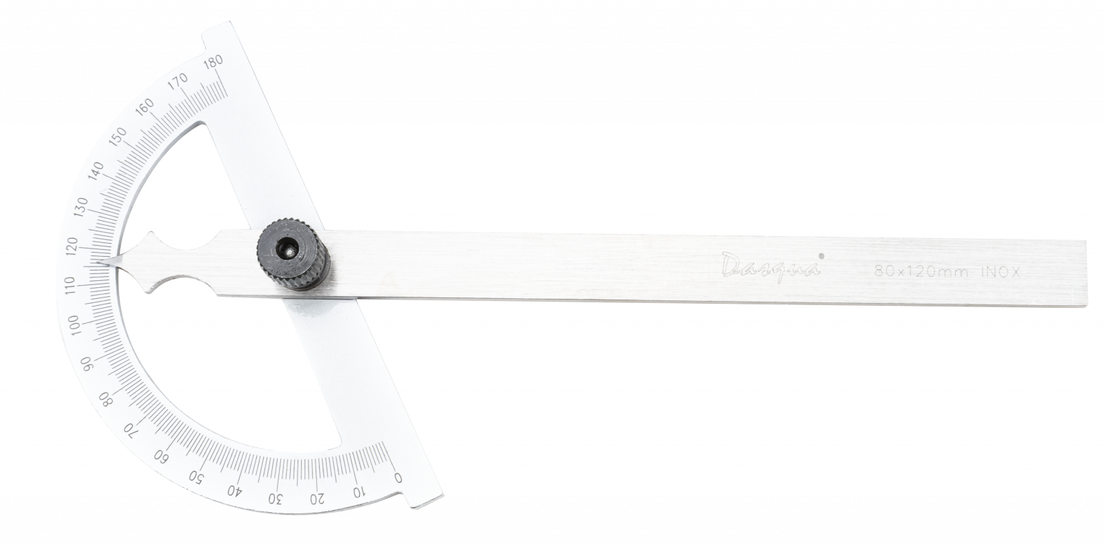 Raportorul unghiular Dasqua 0–180° cu dimensiuni 120x150 mm este un instrument profesional utilizat pentru masurarea si transferul precis al unghiurilor. Construit din otel inoxidabil de inalta calitate si finisat cu crom satinat, acest raportor este ideal pentru aplicatii industriale, arhitecturale si in prelucrari tehnice. Sistemul de blocare permite fixarea unghiului dorit, iar scala gravata asigura citirea usoara si precisa.