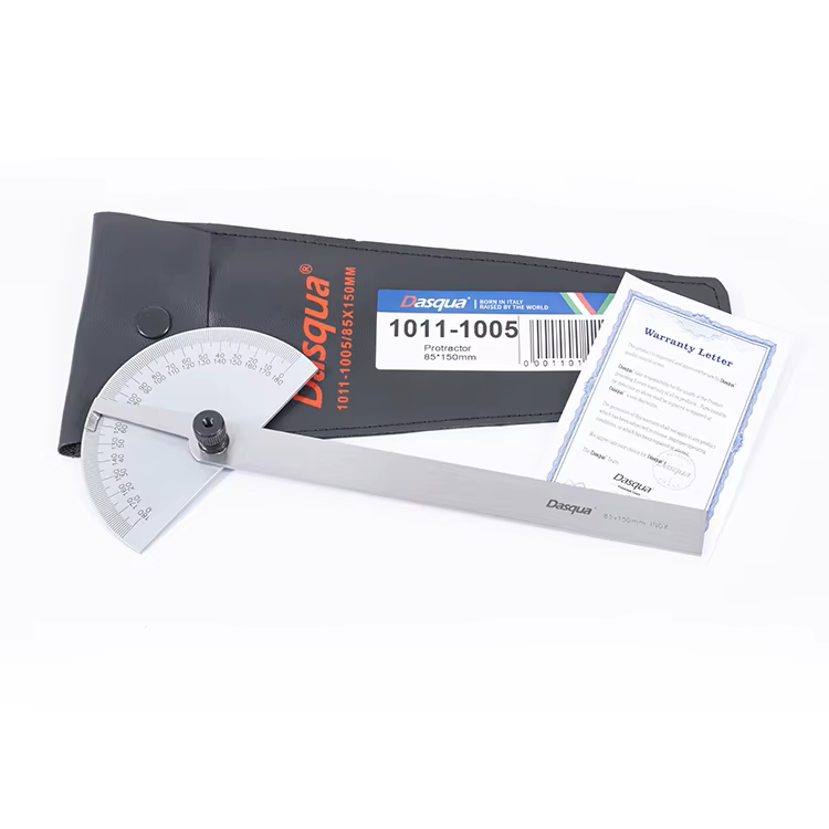 Raportorul Dasqua din otel inoxidabil este un instrument de masura robust si precis, ideal pentru masurarea si transferul unghiurilor in diverse aplicatii industriale, de prelucrare sau proiectare tehnica. Construit pentru durabilitate si acuratete, acest raportor are un design ergonomic, cu finisaj satinat antireflex si buton de blocare a unghiului.