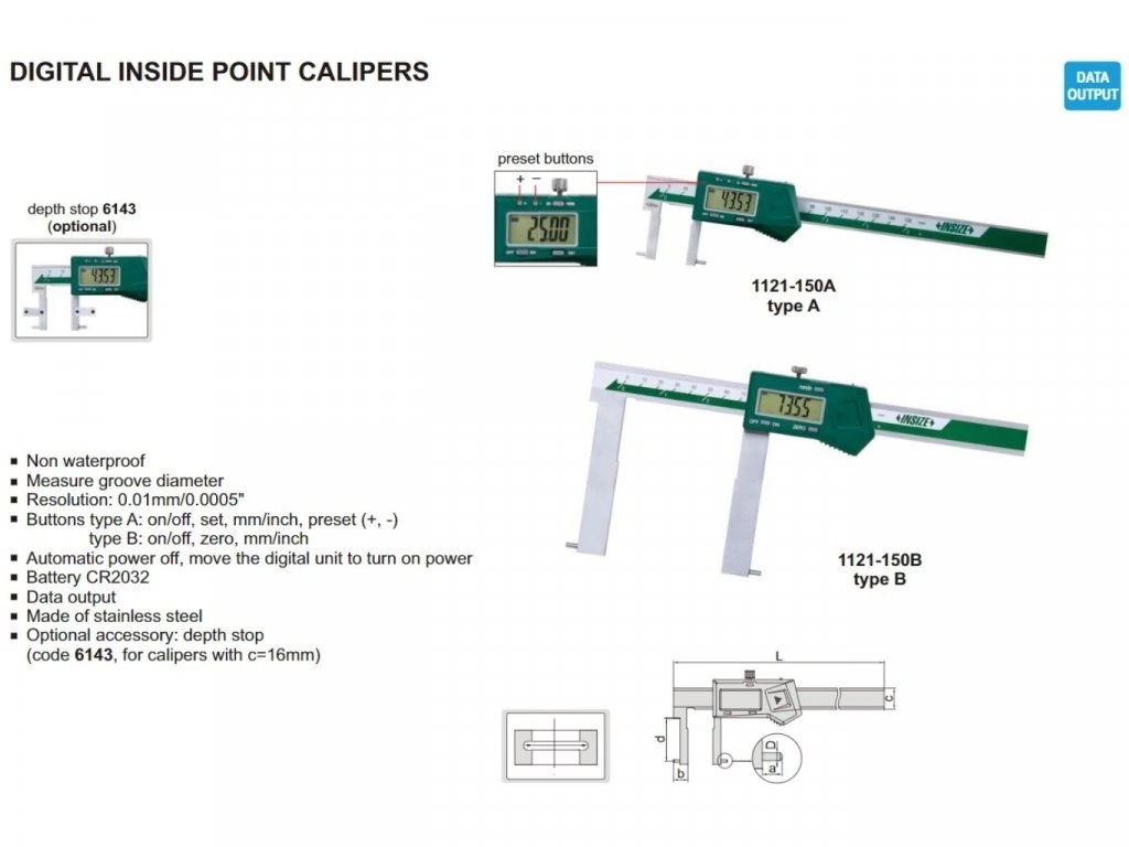 Sublerul digital INSIZE 60-500mm cu ciocuri inferioare pentru masurarea canelurilor și orificiilor interioare este echipat cu ieșire de date wireless, permițând transmiterea rapidă și precisă a măsurătorilor către dispozitive externe. Ciocurile inferioare lungi de 120 mm sunt prevăzute cu vârfuri rotunde de 3 mm diametru și 10 mm lungime, ideale pentru accesul în spații dificile și măsurători precise. Dispozitivul include funcții de pornire/oprire automată, presetare a valorii inițiale și comenzi simple pentru unități de măsură.