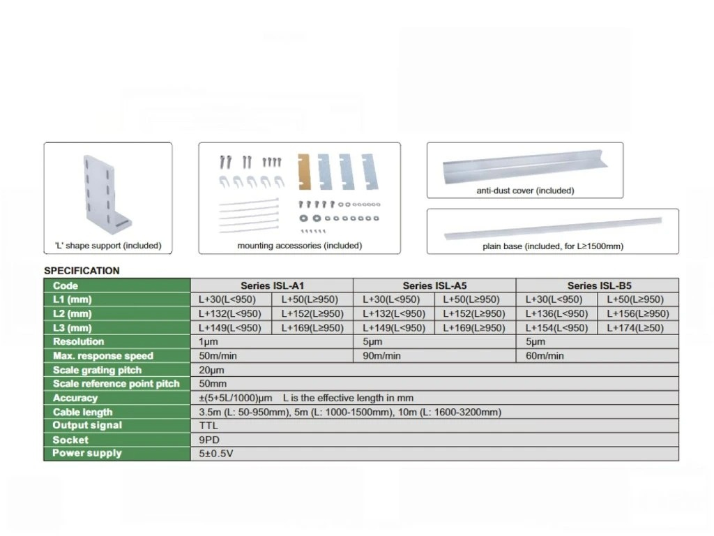 Rigla digitala ISL-B5-550 INSIZE, rezolutie 5 μm, lungime 550 mm, tehnologie optica TTL, cablu 3,5 m, suport L si husa de protectie.
