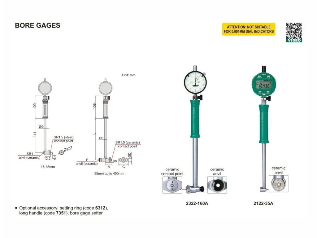 Acest model este proiectat sa masoare alezaje intr-un interval cuprins intre 18 si 35 mm. Diferenta majora fata de modelele mecanice este ceasul comparator digital (cod 2108-10F), care ofera o rezolutie superioara de 0,002 mm (0,01 mm selectabil) pe un interval de masurare de 0-12,7 mm.