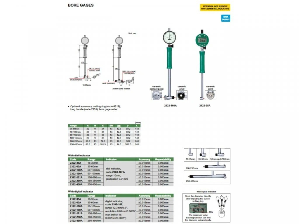 Precizie inalta: Ideal pentru masurarea tolerantei si a abaterilor de forma (ovalitate, conicitate) ale alezajelor.